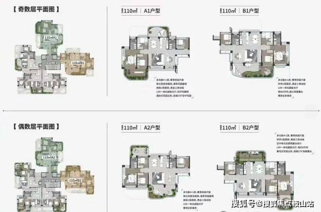 82㎡偶数层:实用率约131%,实际使用空间约110㎡,南向4开间,超大采光面,空中花园面积约24㎡。