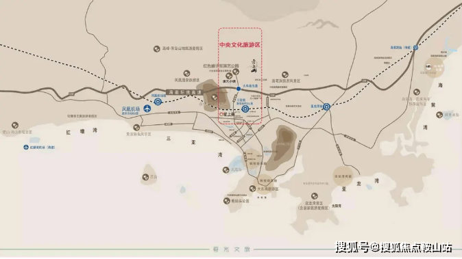 中央文化旅游度假区处于三亚城市的发展区,爱上山·梦想小镇紧邻文化、体育、行政中心,与国家海岸、机场、高铁站、G98高速出口直线接驳。