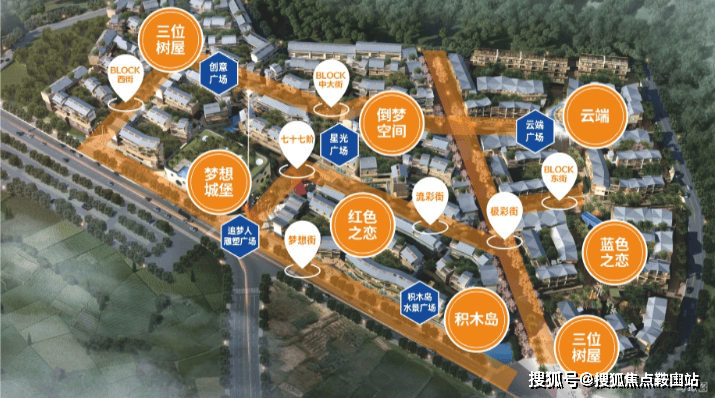 小镇通过积木岛、梦想城堡、云端、红色之恋、蓝色之恋、三位树屋、水下隐室、倒梦空间八大奇异建筑,汇聚顶尖品牌,打造科技馆、儿童乐园、婚恋主题馆、心灵修养馆等多元业态于一体的商业美学空间,是集网红打卡与商业场景并存的心地标。