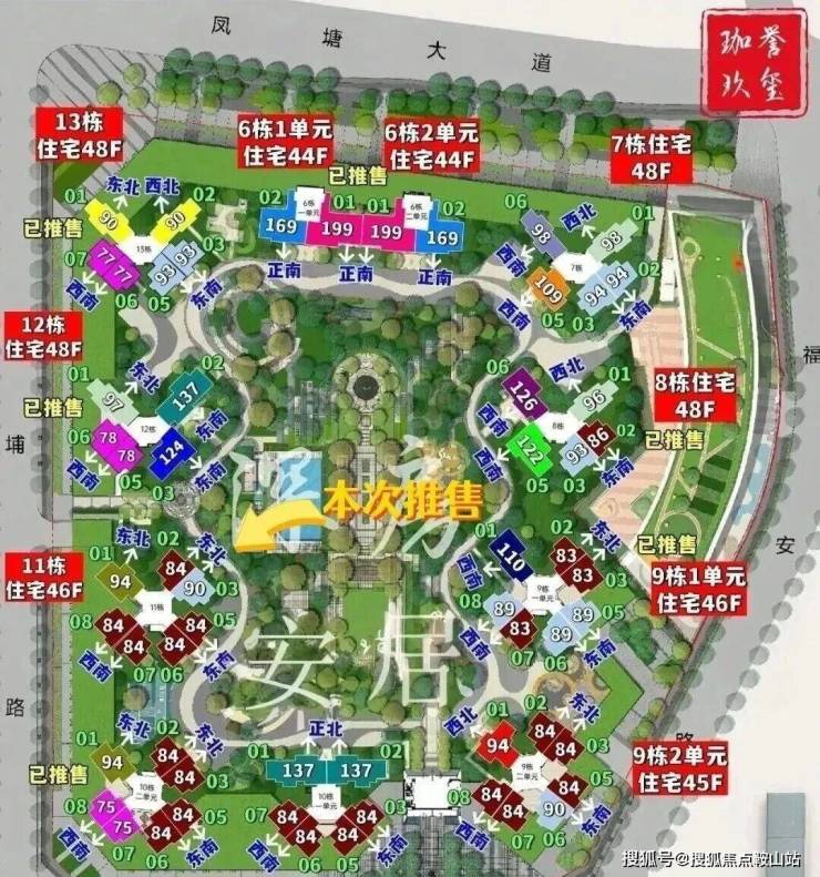 3区珈誉玖玺,总占地面积约4.79万㎡,总建筑面积约40.53万㎡,容积率5.42,绿化率40%,共由10栋总高31-48F住宅组成,总规划2479户。