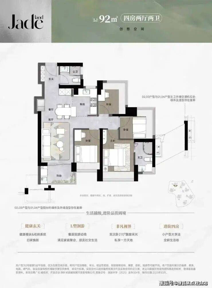 💥92平南向4房2卫,灵动空间,超阔视野