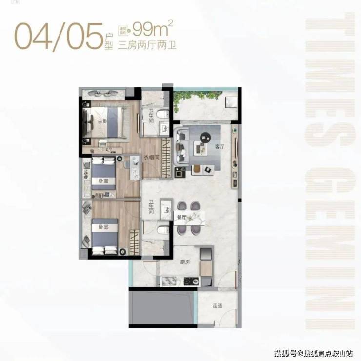 产品方面,时代珑星共两栋楼,分别是G1栋和G2栋。从外形上看,G1栋算正常,蝶形设计,两梯六户,户型为99-106平三房;G2栋外观略显独特,G2栋推出的面积段为62-79㎡精奢小户住宅。