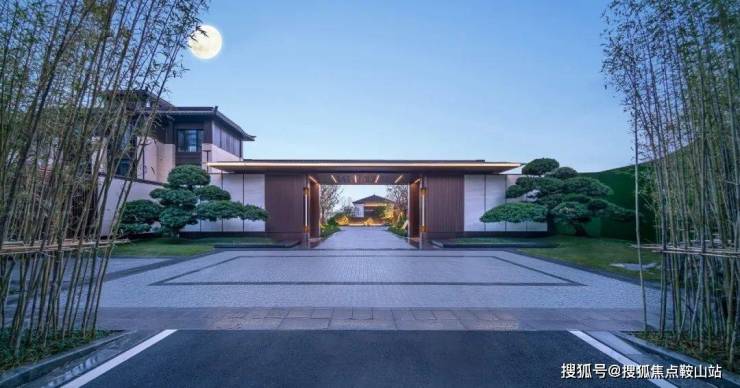 穿过竹林夹道,便是气势精致的门楼,金属格栅搭配景墙细节,处处透露匠心之感。