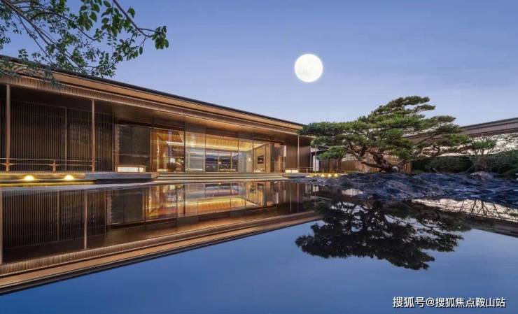 比如前庭铺装使用的浪淘沙,是著名的高档花岗岩;水庭园池底使用的安哥拉黑,是天然名贵石材,其美感独特且质地坚固。