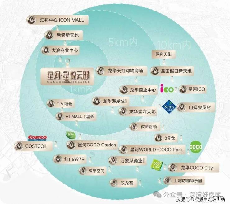 • 约5-10公里是生活到繁华的距离近邻龙华星河iCO、壹方天地、红山6979、华南首家COSTCO(预计2023年第四季度开业)、未来龙华海岸城(规划中)、华润万象系商业(约13.4万㎡规划中)等陆续登场,坐拥多个商圈,未来城市“超级商圈”由此迭变,启幕万象丰盈。
