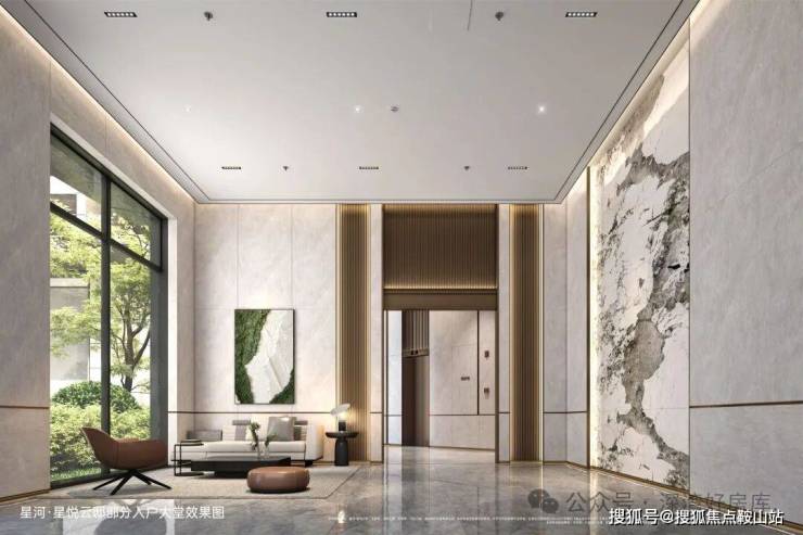 ·悦感公区空间-品质感匠心工艺铸造,诠释高品质之美约6米舒展层高采光大堂,均有采光幕墙;楼栋大堂专属岩板背景墙,潘多拉奢石纹理,内嵌隐藏式光源,设备巧妙暗藏式处理;充分从人性化角度出发打造舒适休息区、会客厅。