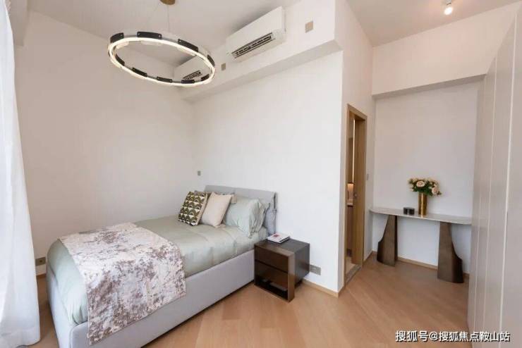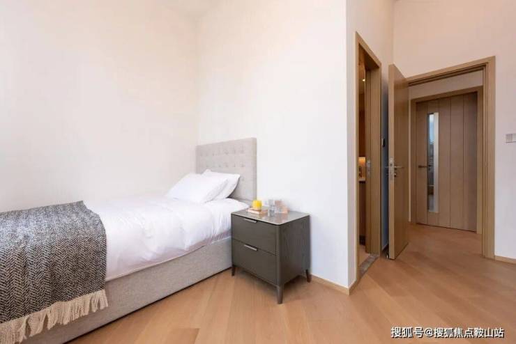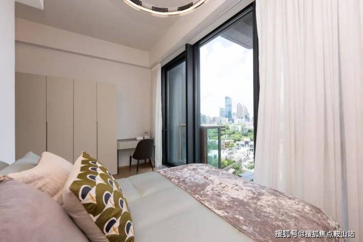 另一间卧室也是套房设计,同样享加多利山一带景观,放置了单人床、衣柜及书桌,仍不失空间感。