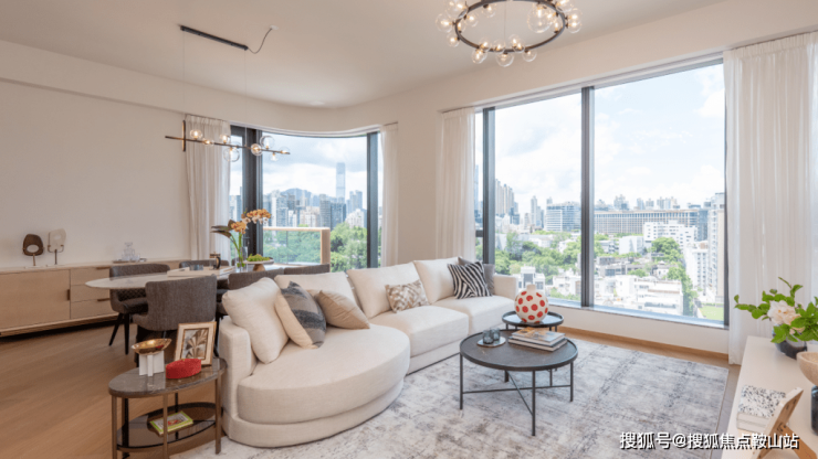 客厅设有转角大型落地玻璃窗,室内采光、通风佳,外连49平方呎的私人平台。
