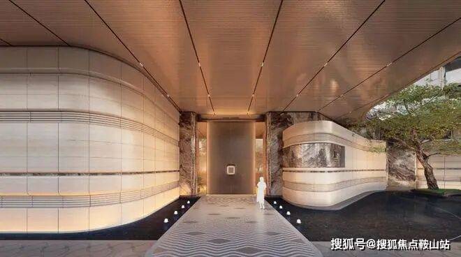 材料的选择进一步强化了这种温润特质。立面主体采用仿石材铝板,这在当前以玻璃铝板为主流的深圳豪宅市场中,本身就是一个态度鲜明的立场。通过精细的构造设计,让材料呈现出一种“轻”的状态:弧面切割削弱了仿石材铝板的沉重感,阴影缝的精确控制让立面在日光下产生微妙的明暗律动。