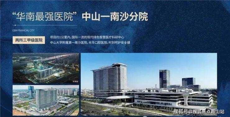 项目距离楼盘约1100米即中山大学附属第一医院南沙院区(已开院),该医院为全科室三甲医院,定位为全国最智能医院,具有海陆空医疗救援体系,2022年度排华南第一,是市民医保定点的佳选。