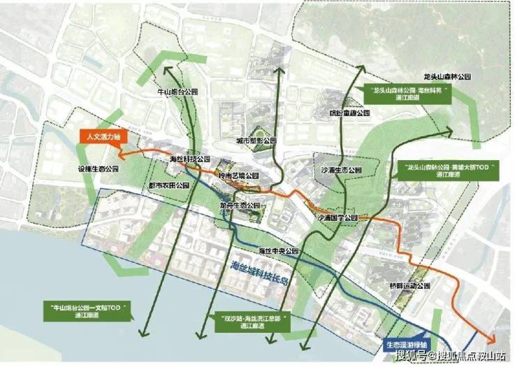 绿色出行:交通网络组织优化,细化海丝城通江廊道,构建慢行空间系统、通山达海漫游路径;构造海绵城市和韧性城市;努力建设打造绿色低碳超低能耗建筑项目。