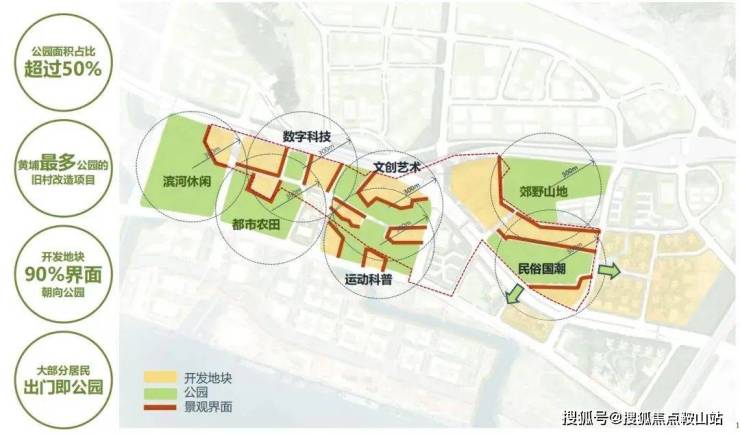 结合本土文化内涵塑造9个特色主题公园:海丝科技公园、都市农田公园、岭南艺境公园、沙浦国学公园、城市塑影公园、缤纷童趣公园、龙舟生态公园、远洋文化公园、桥畔运动公园。