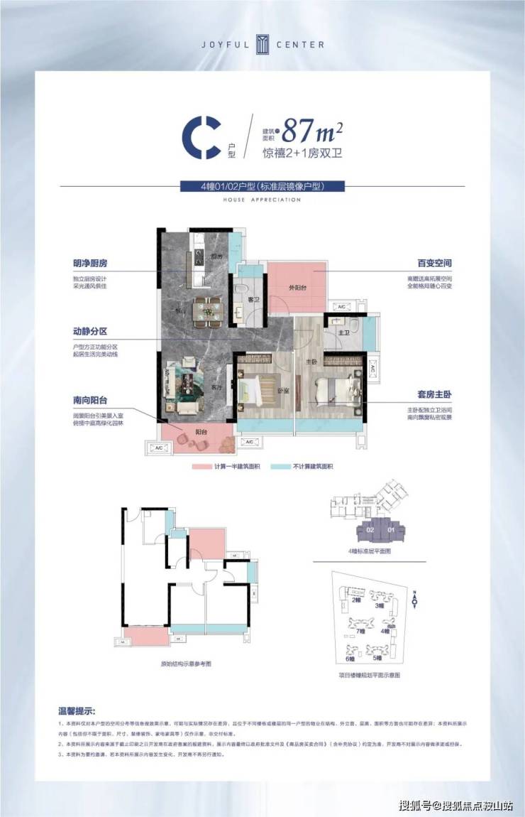 户型方面,也是开发商的一大卖点,在售户型有79、87、93、95、110㎡(3-4房),2梯4户设计,实用率极高,实际得房率超过95%,接近0公摊,全城仅此一处。户户朝南,通风采光俱佳,超级跨张,室内每一个空间都有赠送面积,再挑踢的眼光这里都能满足您。