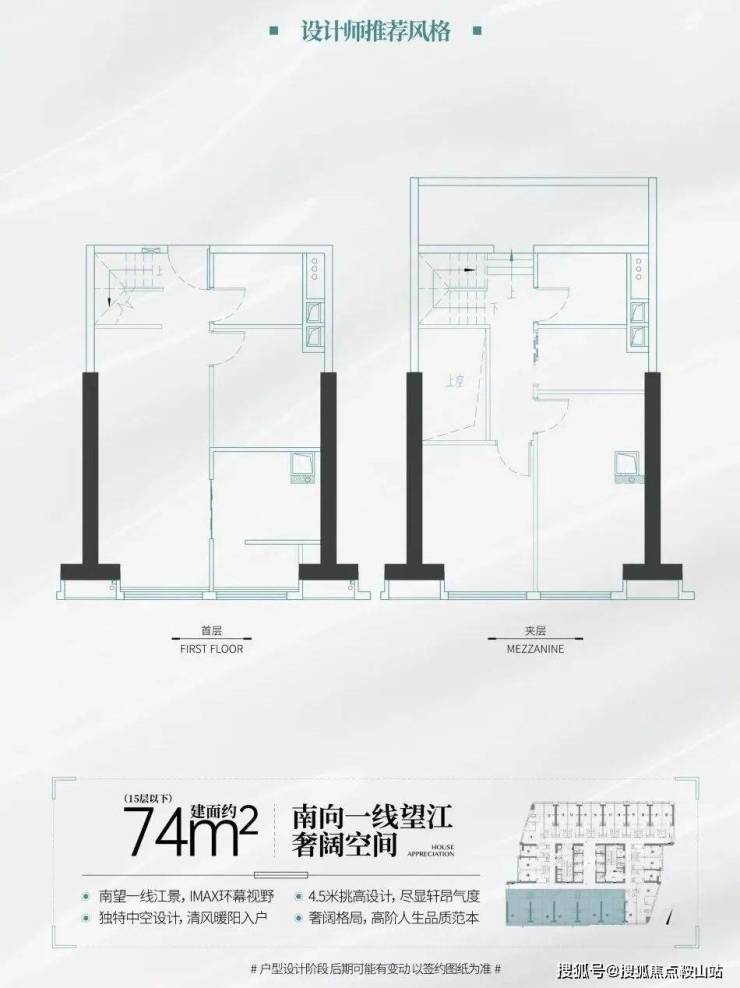 户型:36 - 74㎡复式小户型、176 - 343㎡江景大平层