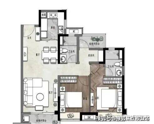 建面约100㎡ 三房两厅两卫
