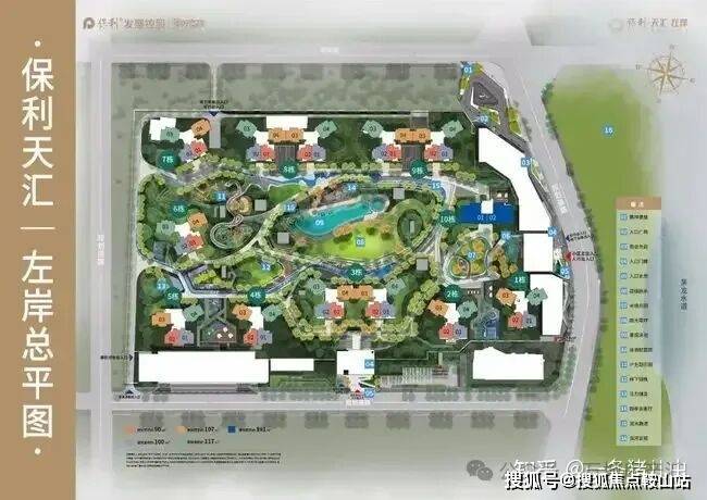 保利天汇左岸外立面采用现代主义设计风格,项目整体坐北朝南,由10栋住宅及周边公建配套所组成。
