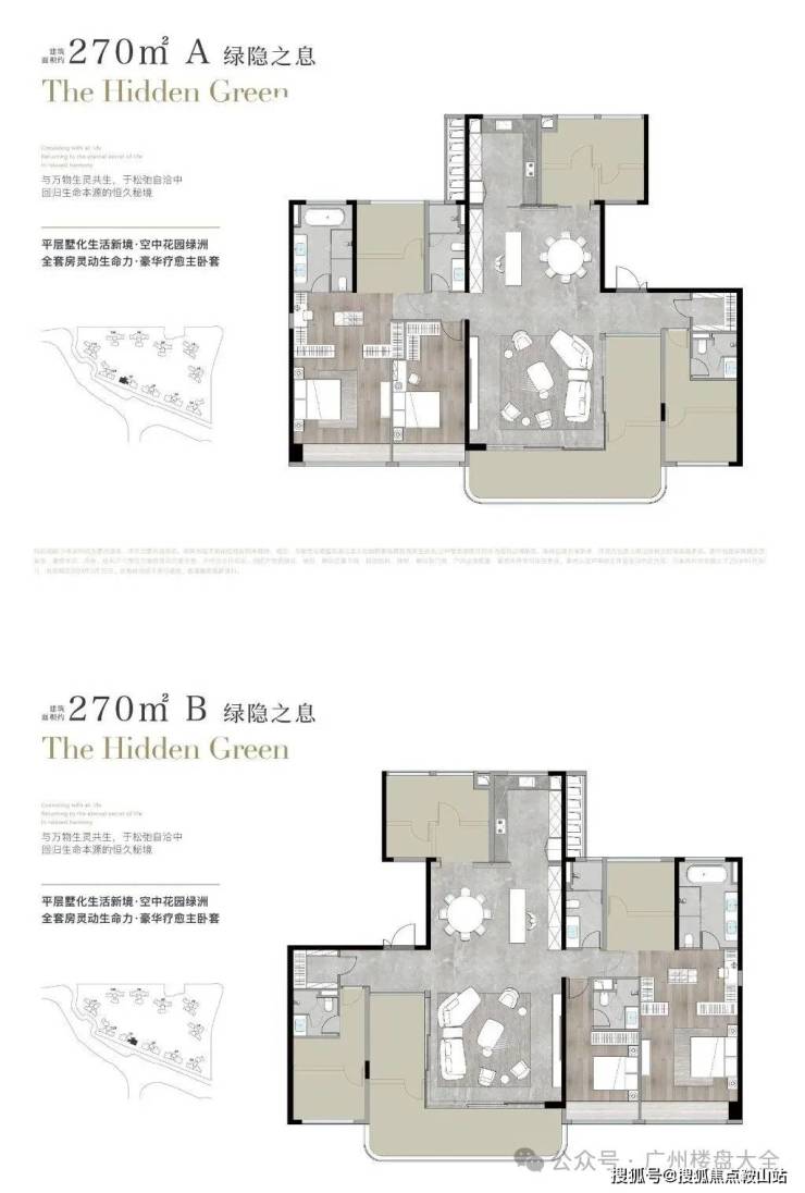 户型涵盖建面约125㎡到270㎡,以大平层为主,定位品质改善,
