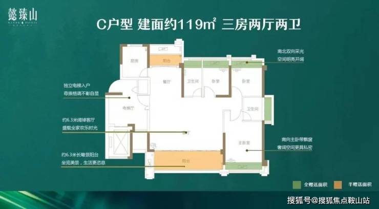 ✔ 119㎡ 南北对流,3房2厅2卫
