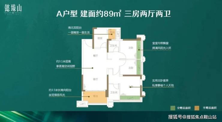 ✔ 89㎡ 东南, 3房2厅2卫