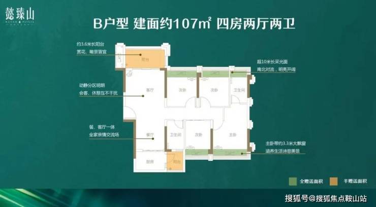 ✔ 107㎡ 南北对流,4房2厅2卫