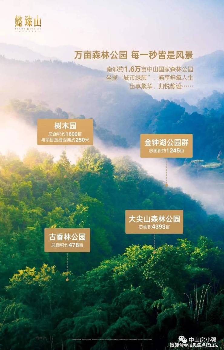 ◎ 懿臻山,遵循世界豪宅的黄金法则,择址约 1.6 万亩中山国家森林公园旁,森林覆盖率近 87%,堪称天赋稀贵的“天然氧吧”。