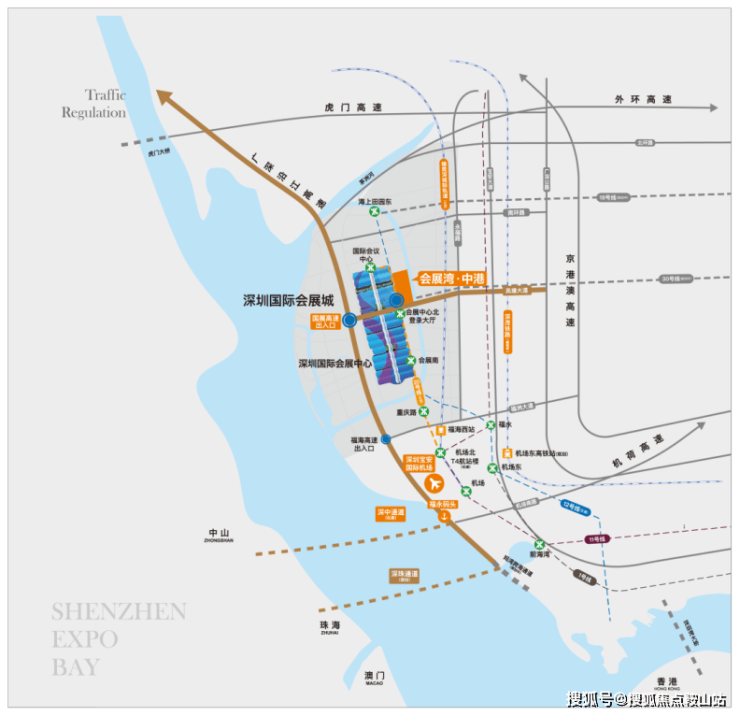 会展新城地处深圳西部,是深圳在粤港澳大湾区的战略制高点,与前海、蛇口并列为深圳融入湾区的两大枢纽,占位珠三角广深港发展走廊核心。