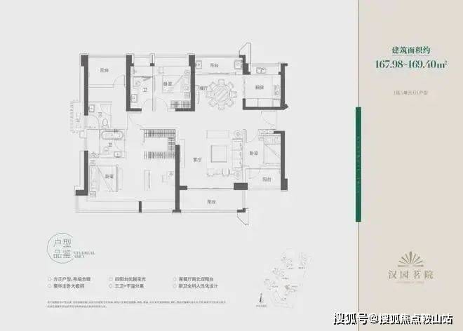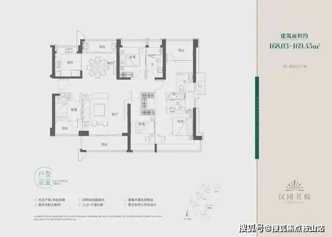 项目户型方正、布局合理,动静分区,其中168㎡五房户型为四阳台设计,客餐厅南北通透双阳台,豪华主卧大套房。