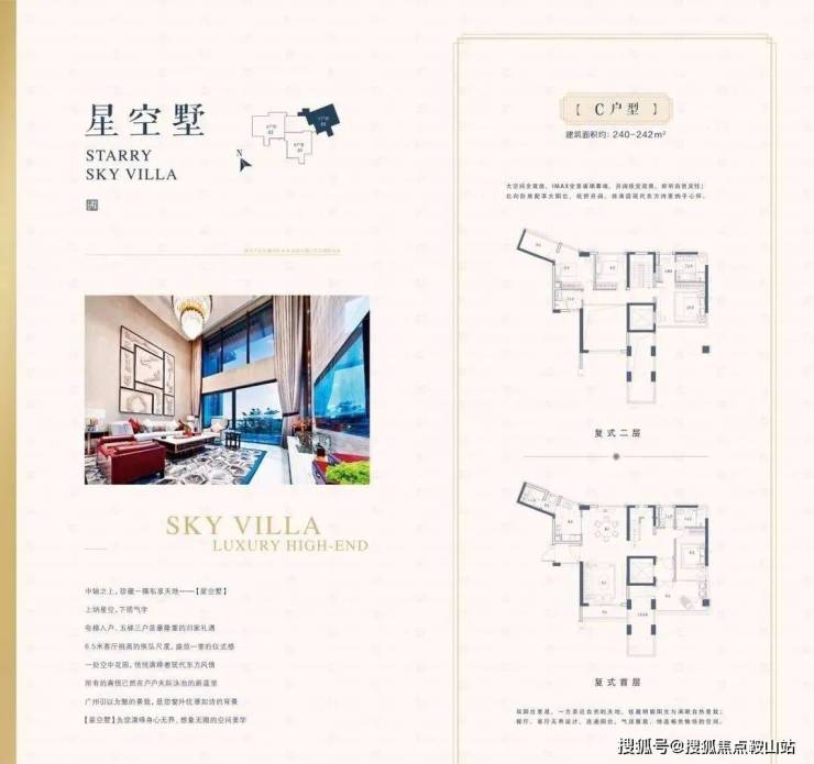 约2.2低容积率 打造广州低密高端墅区佳兆业天墅以建筑密度约22%,低至2.2的容积率,打造约305-455m2的低密墅居。一般住宅层高普遍约为2.8-3米,而天墅全盘整体抬高7-10米,相当于正常住宅的7楼高度,山景与园景一览无余。