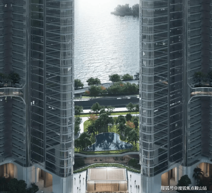 下沉式中央园林:多层次台地花园 + 镜面水景 + 艺术连廊,形成 "移步换景" 的归家动线