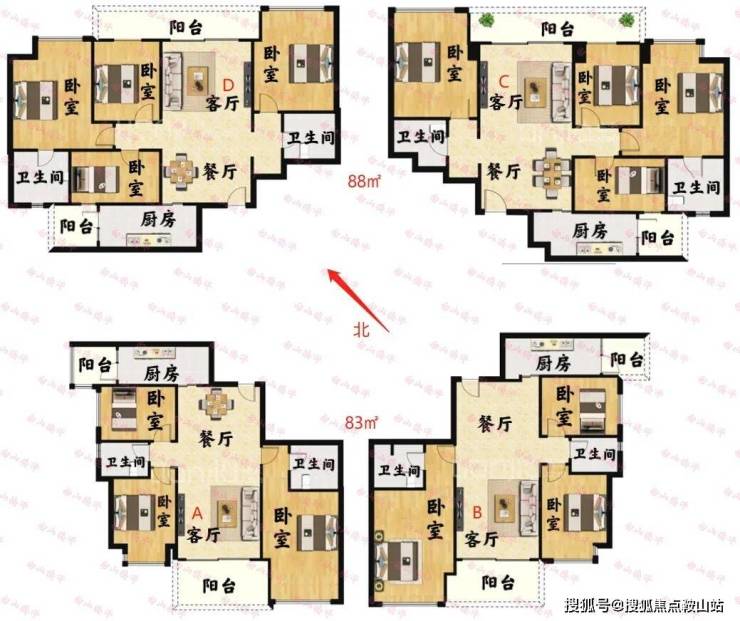 - 83-89㎡:小户型,4栋为主,占比约20%
