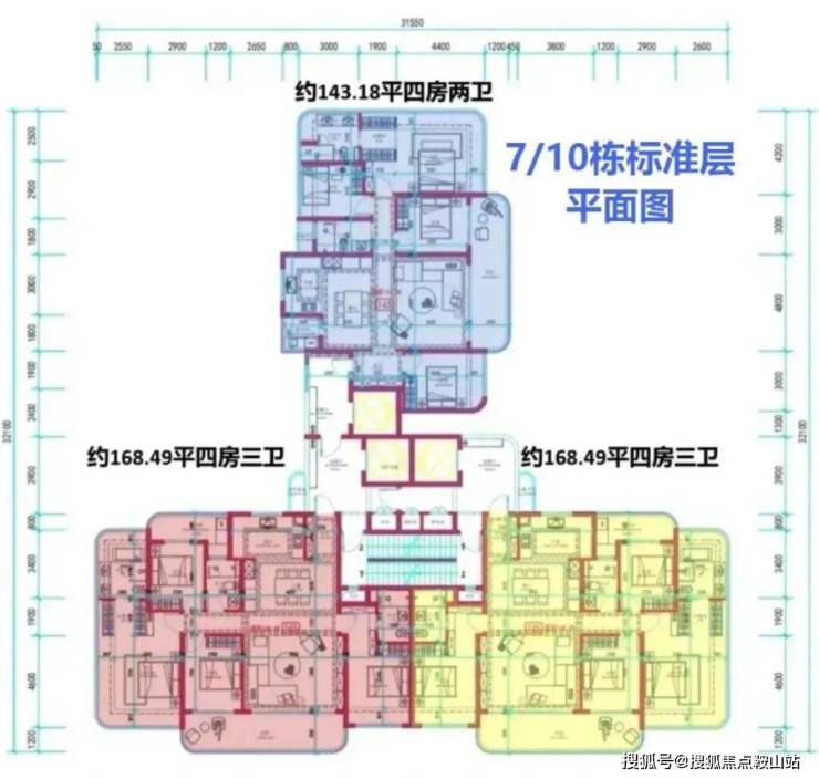 从曝光的户型图看,180-320㎡的大平层设计确实亮眼,全景飘窗。建面约180㎡四房两厅三卫南北通透,客餐厅超50㎡;约250㎡户型拥有16米南向奢阔面宽,双主卧套房均带海景卫浴。2T2户、3T3户的配置保证了居住品质。独立电梯厅和接近100%的使用率是新规下的显著优势。