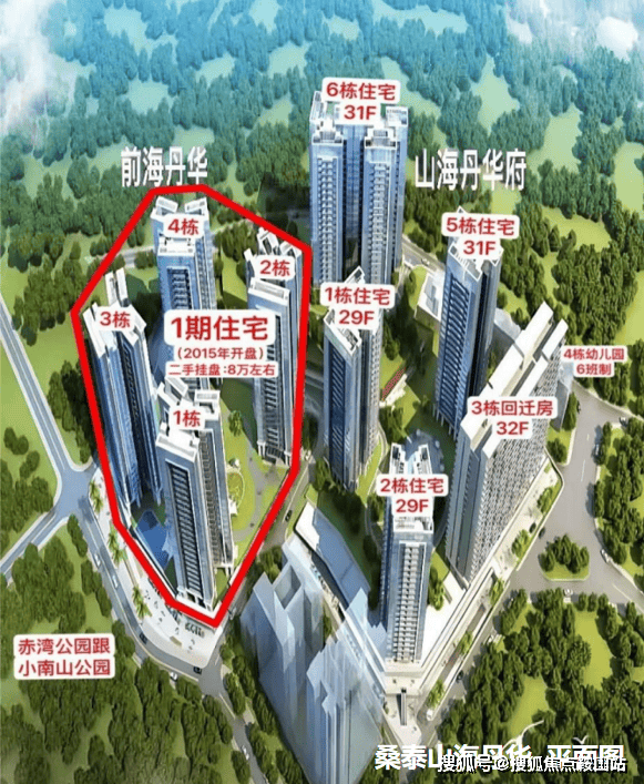 二期即山海丹华府,共由5栋29-32F高的住宅组成,
