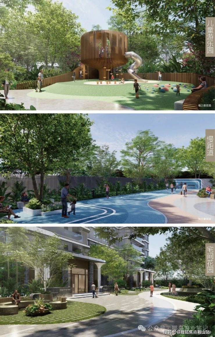 设置城市会客厅、泳池廊架、约307㎡泳池区、儿童游乐园、约350米健康跑道、迷你运动场等,可享、可赏、可玩的体验式园景。