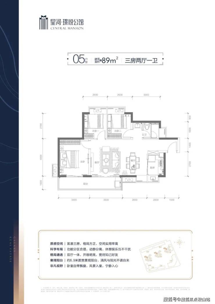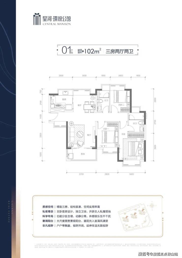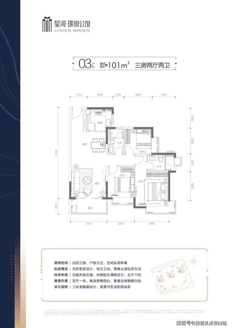 项目分一期开发总占地17337.46㎡ 、小区朝南而向,视野宽,由3栋高层住宅、1栋公寓及部分商墅组构而成,集臻品住宅、创想空间、商务会馆等多元业态于一体,高层住宅为78-103㎡二至三房,高品质装标,户户均带飘窗,大尺寸宽景阳台,采光俱佳;