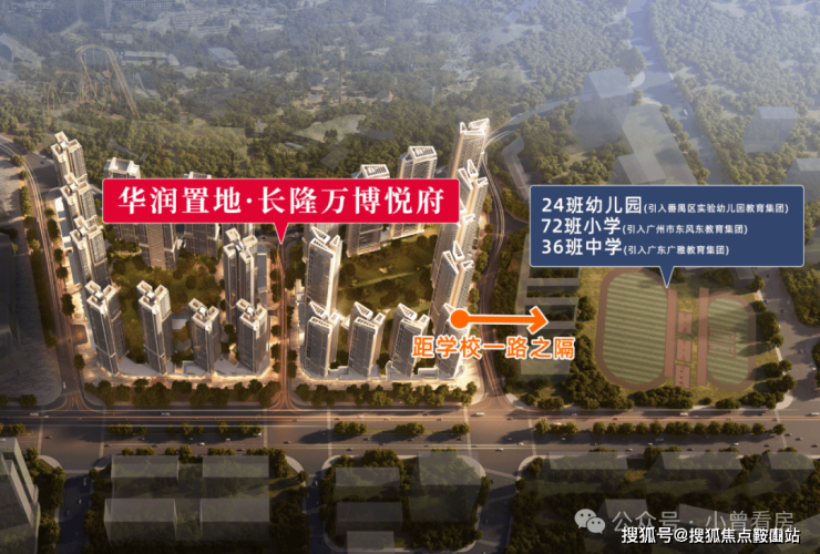 项目与东风东+广雅,不过一路之隔。孩子能实现目送式上学,幼儿园、小学到初中,都能从家楼下走几步路就到学校。