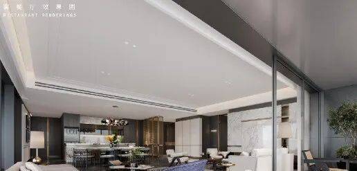 客厅开间近9米,进深近10米,3.6米层高,净高约2.7-3.1米(部分吊顶不同,高度有所区别)空间尺度十足,奢享品质人生
