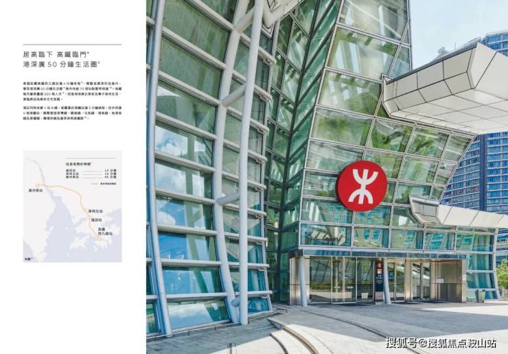 高临距高铁西九龙站仅4分钟车程,住户能充分受惠于以近千亿打造的高铁效应,实现港深广50分钟生活圈,高铁每月载客量逾200万人次,促进港深广企业家及专才两地生活。现时由高铁西九龙站到深圳北站,车程平均20分钟以内;到全国最繁忙高铁站广州南站,最快可于48分钟内到达。