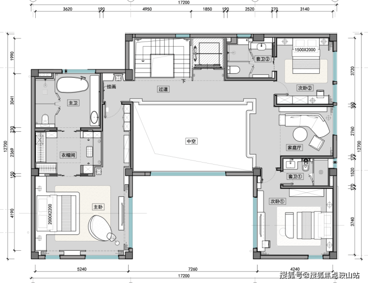二层卧室布局错落有致,挑空区丰富空间层次;