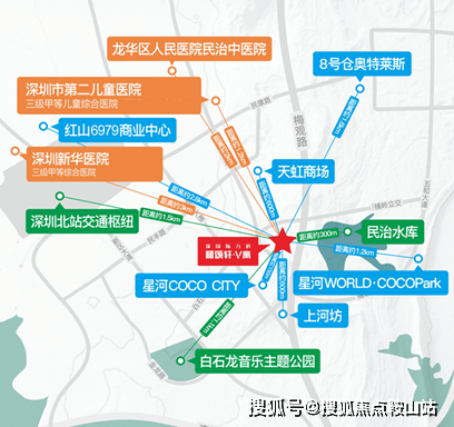 地铁-地铁线路密集: 1站深圳北,2站福田。4/5/6/21(规划中)/22(在建中)号线,5条地铁环绕;项目距离4号线白石龙站直线距离约600m,便捷通达;