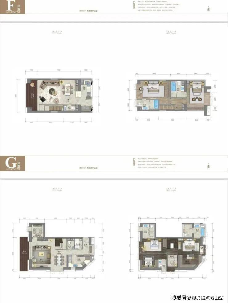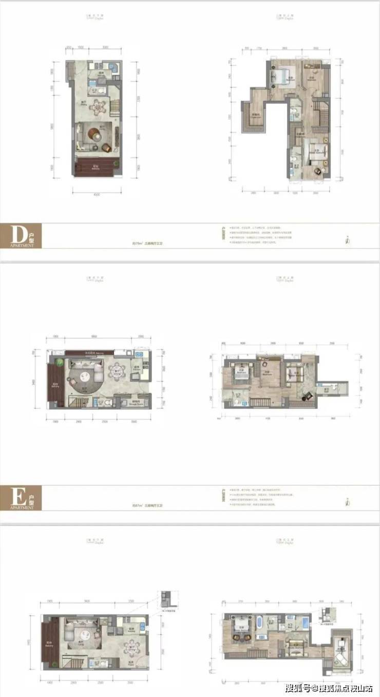 【D户型:79㎡复式三房两厅三卫】南北通透,方正实用,4.5米大开间,拓展后套内面积高达128平,豪华套房主卧,私属阳光主卫和独立衣帽间,次卧配备约10㎡多功能衣帽间,尽显个性风范。