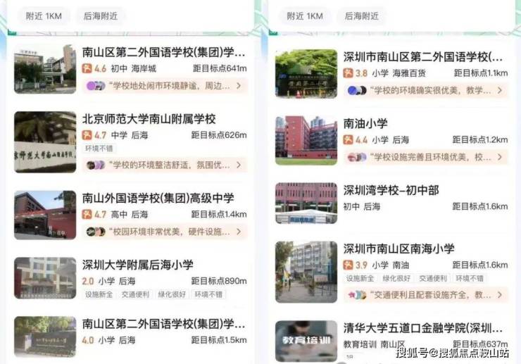 :南二外集团南油小学(步行约 1km,对口)、深圳大学附属后海小学、北师大南山附小