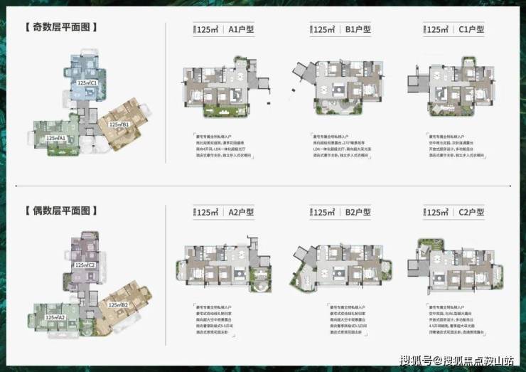 户型面积:82㎡-110㎡-125㎡(三至四房)