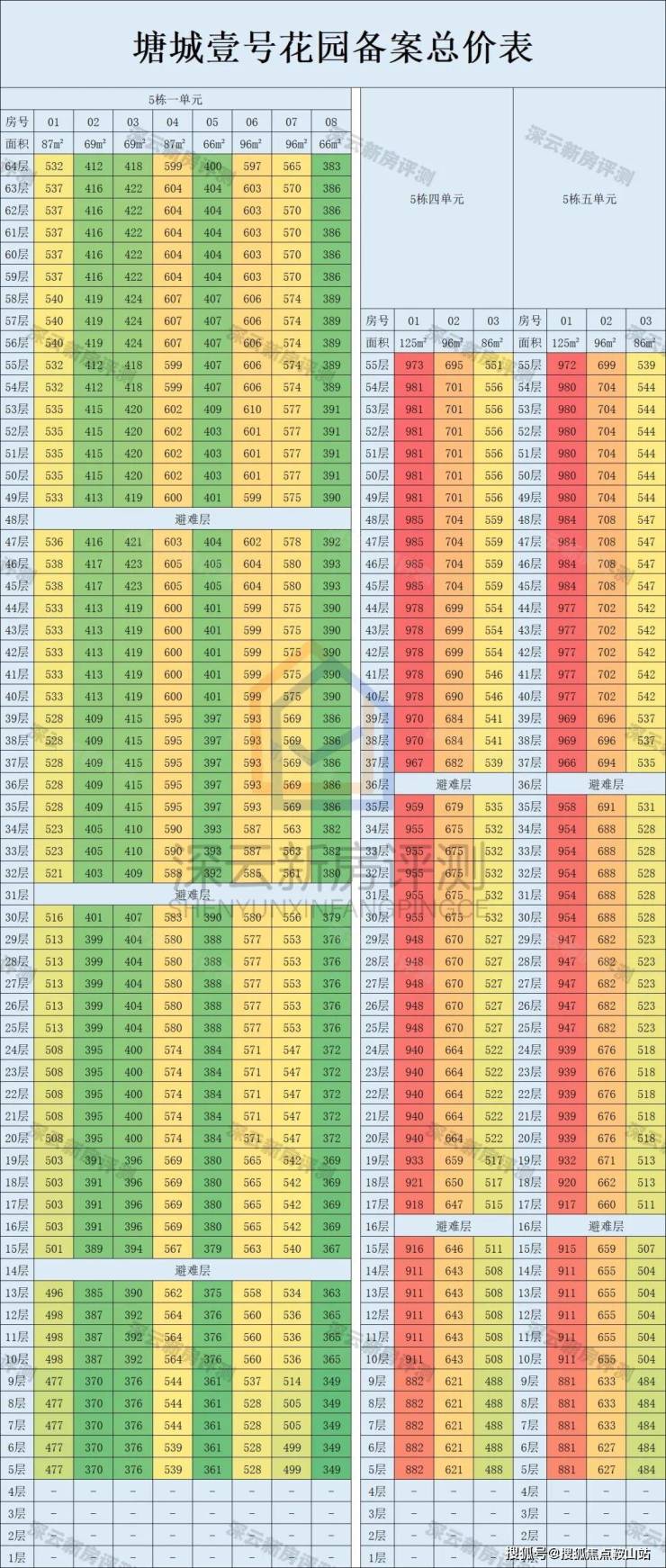 总层高:5栋一单元64F,二三单元54F,四五单元55F