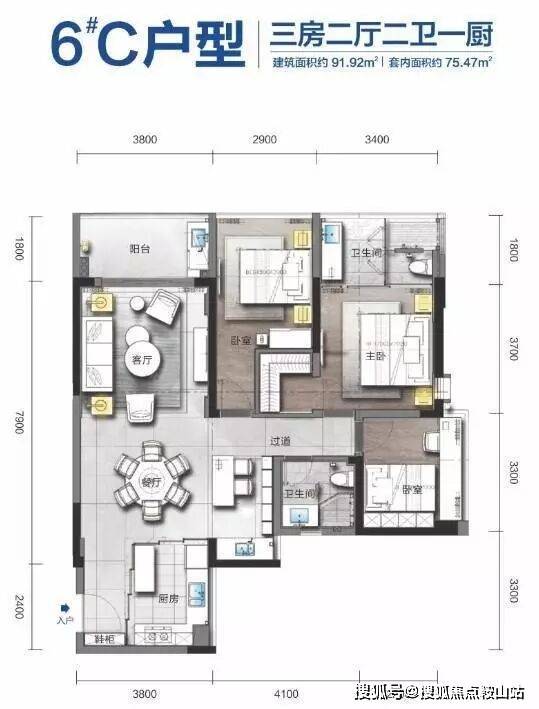 户型方正格局,利于采光通风,空间使用率高。避免出现长过道,浪费使用面积。避免出现多拐角,出现采光死角和磕碰情况。