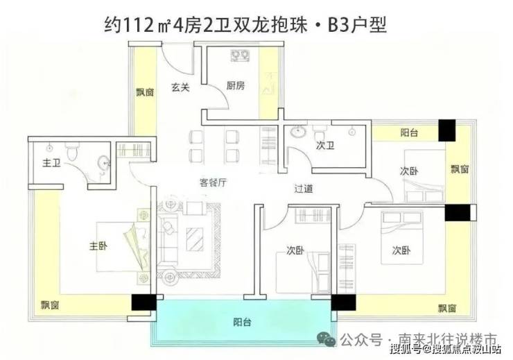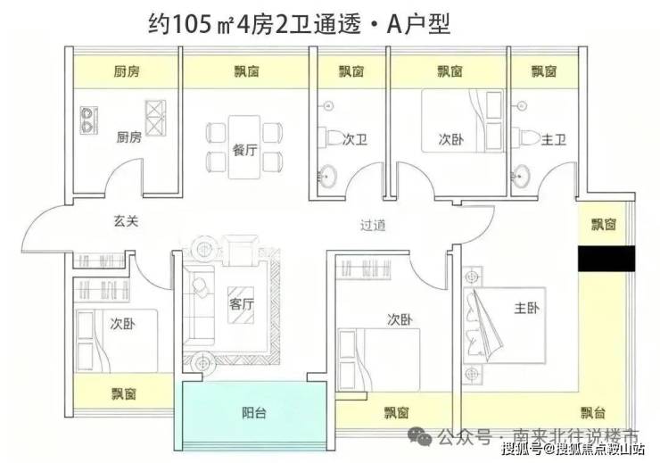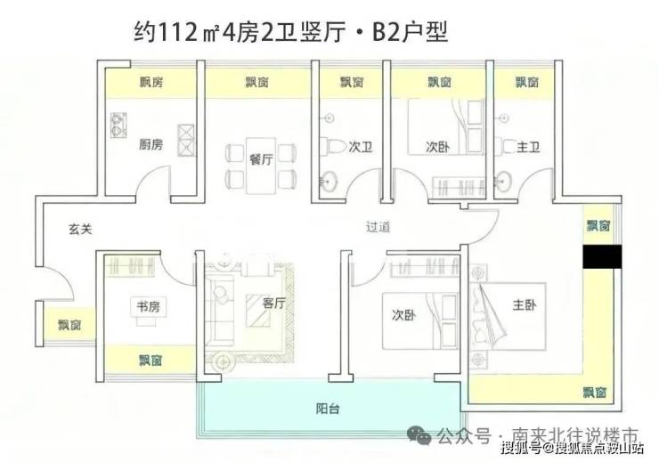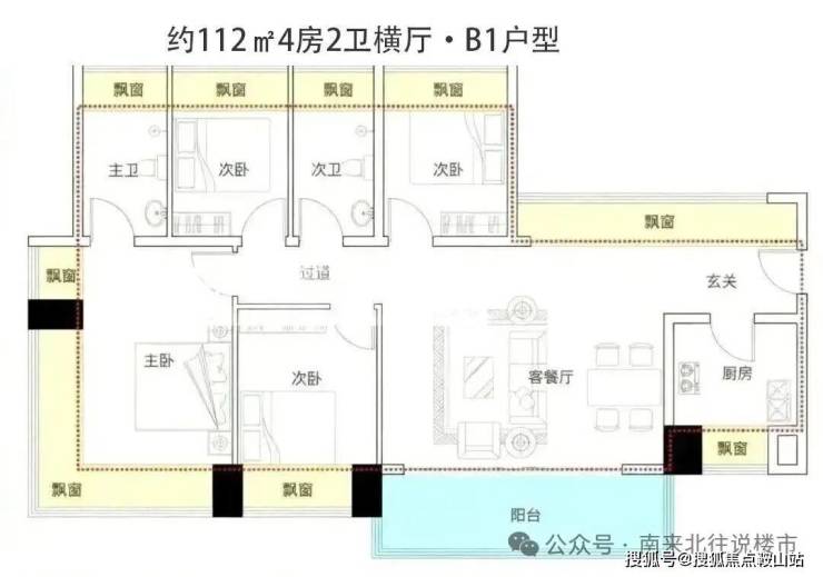 户型面积为105-188㎡纯四房,2梯4户,西南向无遮挡看海,西北向看高尔夫+碧海湾公园。