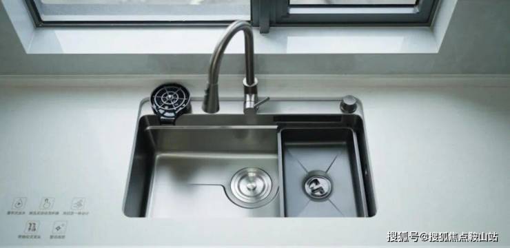 厨房的多功能水槽集瀑布式出水、按压式自动洗杯器、带抽拉式龙头、洗切沥设计于一体,都是片区罕见的精装交付。