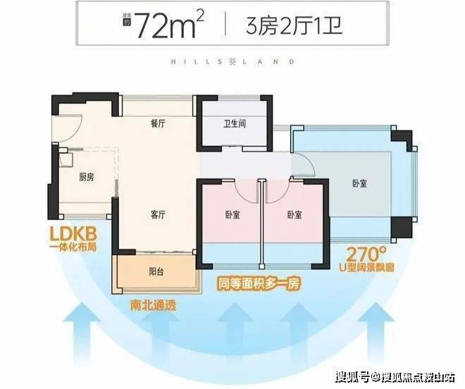 80㎡是本批次产品中唯一设计为南北对流格局,而且是整体横向采光,位于1栋,仅有2条腿,朝向社区内部园林相对静谧。