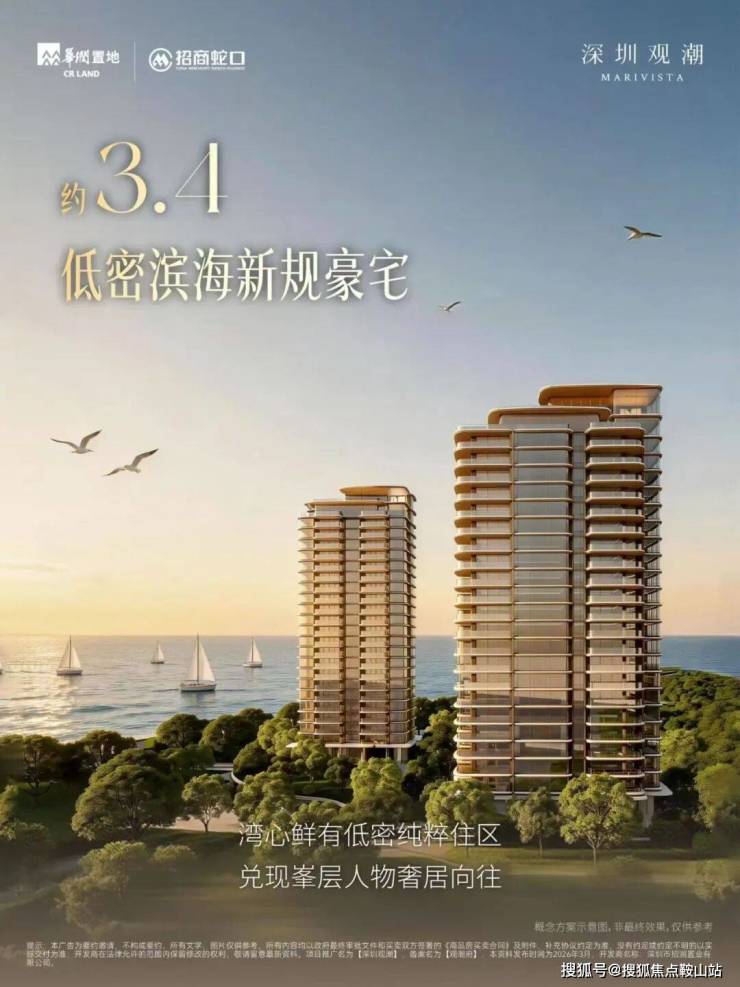 大师执笔,造极湾区建筑美学为不负这片湾心贵壤,项目力邀gad谭偲、承迹景观陈玉容、DIA丹健国际张健、932Design Chee Khiang等全球大师联袂设计,以超越时代的审美,雕琢湾区人居范本。• 一栋一岛布局:十一栋塔楼非对称漂浮于中央绿地,最大化海景视野均好性,以超大楼间距,打造罕见的城市呼吸界面;• 海洋美学建筑:金属线条如桅杆竞发,弧形曲面似浪涌翻卷,白昼如礁石静立,夜晚似灯塔微明,每一道弧线,皆是大家气象;• 东南向一线瞰海:天赋稀贵的东南向格局,让清晨暖阳斜洒入厅,海面漾起粼粼金辉,执杯咖啡立窗前,俯瞰城芯苏醒,时光在此悄然放缓。低密海境,重构都市栖居想象深圳观潮跳出传统住宅设计,以立体浮岛社区为核心理念,在寸土寸金的湾芯,打造低密、生态、奢适的居住体验,让归家成为一场穿越风景的心灵洄游。• 十岛浮屿园林:十栋大宅如岛屿轻落中央水院,约5.5万㎡五重立体生态园林,突破平面造园维度,水如镜、树成荫,步步入画,户户藏景;• 三重归家礼序:约9米挑高车马厅、臻植造景、圆穹顶圆形水景,将东方吉祥寓意融入动线,步步藏礼,层层见境,归家即归心;• 恢弘服务底盘:3层架空抬高设计,户均约40㎡服务配套,叠加商业街区、中央公园景观,实现深圳鲜有的高端社区服务体验;• 深谷会所秘境:会所沉入山谷,隔绝车马喧嚣,为时代人物打造圈层社交、身心休憩的专属场域,谈笑间,海风入席。
