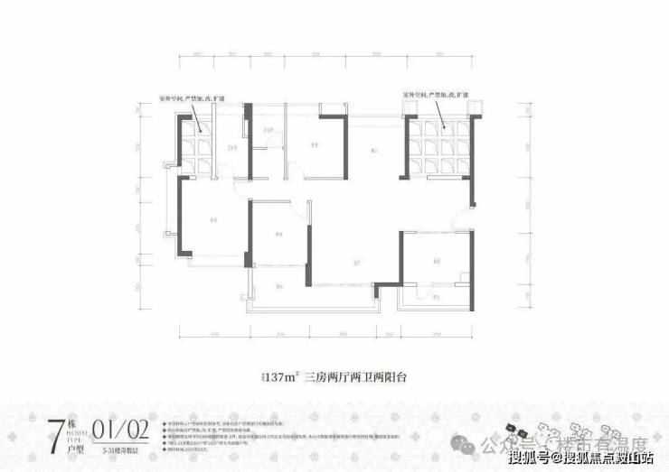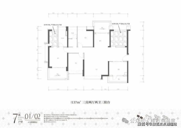 如建面约137㎡的户型,在设计上也同样可圈可点。