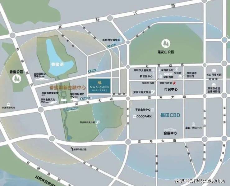 新世界香蜜四季家园位于香蜜湖新金融中心附近,按照目前规划,香蜜湖新金融中心主要分为北区和中区,中区未来将规划落成深圳金融文化中心、深圳博物馆、深圳国际演艺中心三馆,北区是深圳国际交流中心。